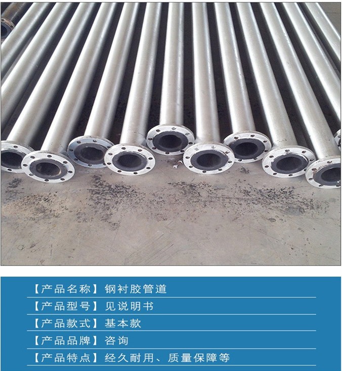 管材的增强骨架钢管与橡胶层使用高性能的粘合剂复合为一个整体,克服了钢管耐压不耐磨, 塑料、橡胶耐磨不耐压以及玻璃钢脆抗冲击性能差等缺点,同时具备钢管和耐磨橡胶的共同优点,综合性价比。
